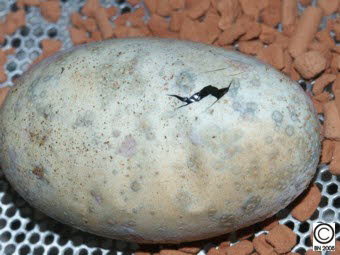 Ei kurz vor dem Schlupf.Das Ei wurde mit dem Eizahn schon geöffnet